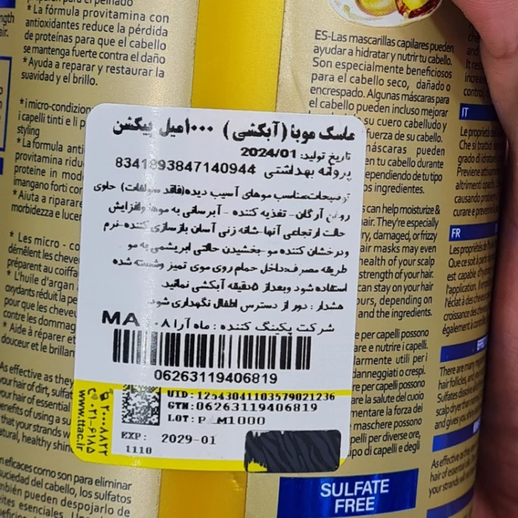 ماسک مو فری سولفات ارگان پیکشن 1 لیتر (با ابکشی)