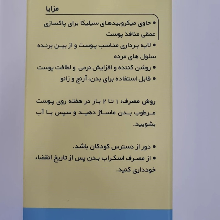 اسکراب بدن ژنو بایوتیک قابل استفاده برای لایه برداری از آرنج، زانو و سایر نقاط بدن تولید شده در حجم 50 میلی لیتر دارای میکروبیدهای سیلیکا از بین برنده سلول های مرده سطح پوست اسکراب بدن ژنو هیدراته و نرم کننده پوست پاکسازی کننده منافذ پوست از آلودگی و ناخالصی مناسب مصرف یک تا دو مرتبه در هفته حاوی ترکیبات ضد التهاب آلانتوئین و آلوئه ورا فرموله شده با روغن های مغذی و غنی از ویتامین نارگیل و بادام شیرین