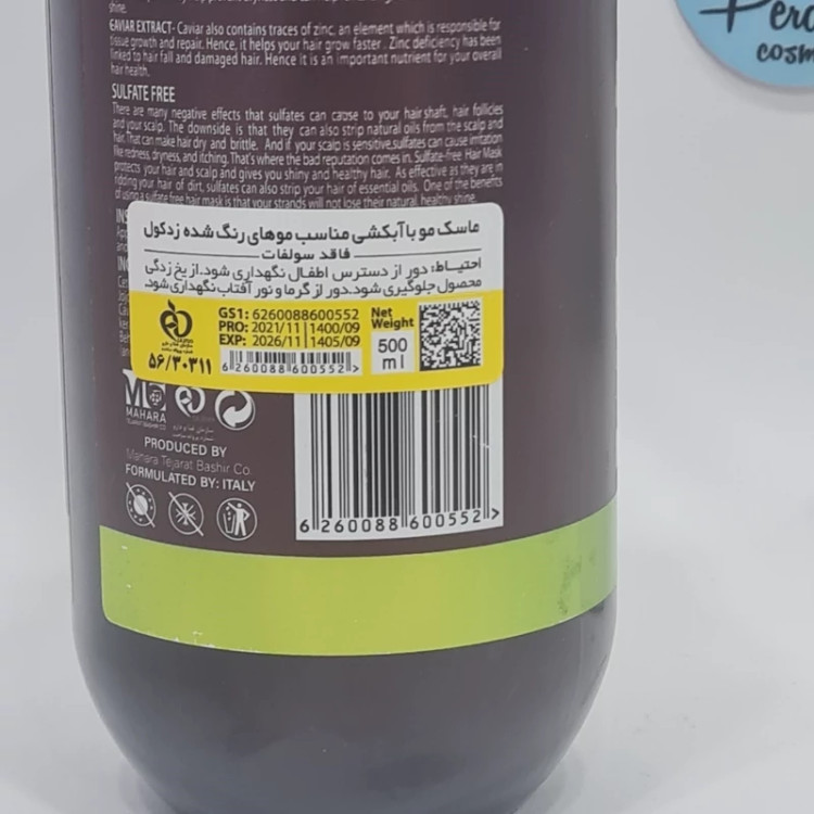 فاقد سولفات و پارابن – ماسک داخل حمام بوتاکس سرد – حاوی کراتین و کلاژن – جلوگیرى از موخوره و کاهش شوره سر