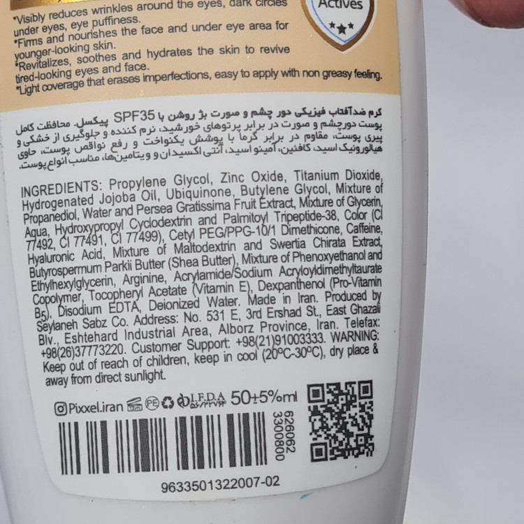 کرم ضد آفتاب دور چشم رنگی از برند پیکسل، تحریک کننده پوست نیست و برای افرادی که پوست حساس دارند، بسیار مناسب است. نسبت به ضد آفتاب شیمیایی، خاصیت مرطوبکنندگی بیشتری دارد لذا ممکن است سنگینی آن بیشتر روی پوست حس شود.