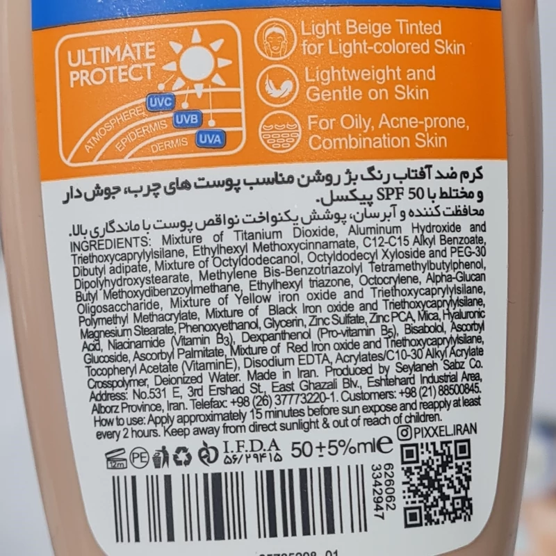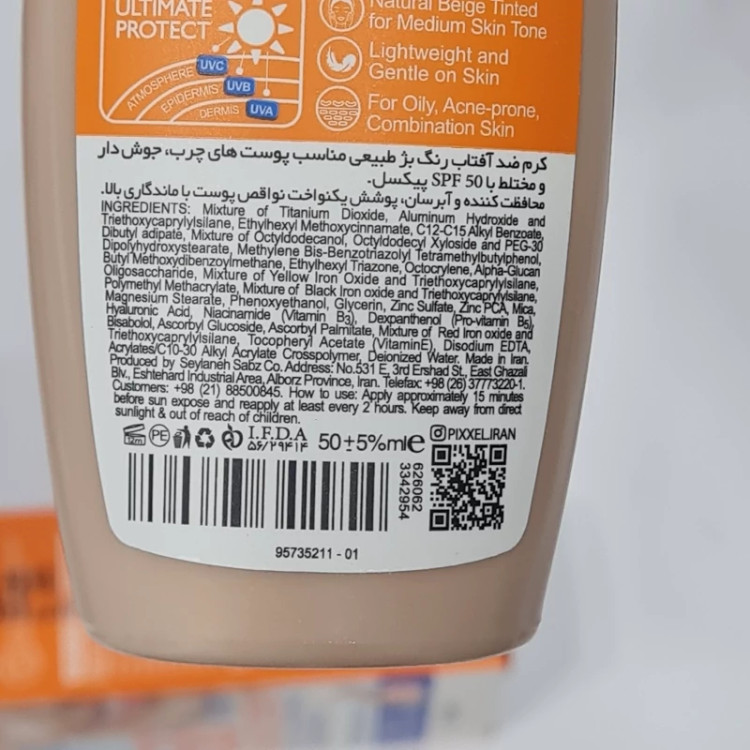 کرم ضدافتاب رنگی پیکسل SPF50 پوست چرب