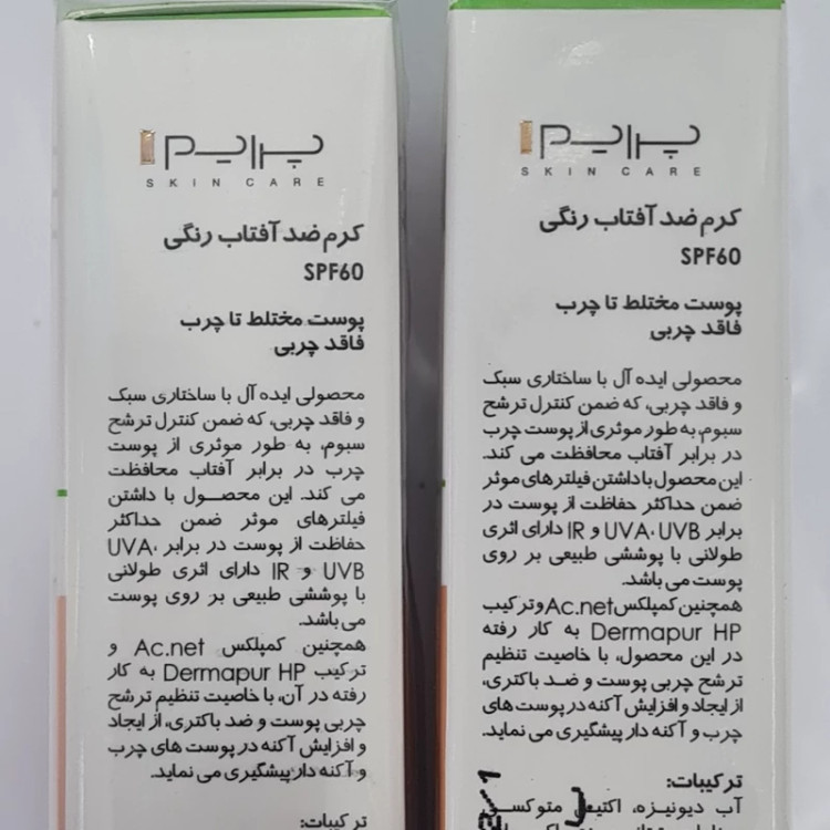 خواص ضدآفتاب پریم برای پوست چرب ضد آفتاب پریم رنگی برای پوست چرب حاوی فیلترهایی است که نقش موثری در جلوگیری از آسیب اشعه فرابنفش به پوست دارند. این کرم با داشتن کمپلکس Ac.net و عصاره طبیعی گیاه عروس چمنزار، در تنظیم ترشح سبوم پوست چرب و هم چنین کاهش رشد و تکثیر باکتری های مولد آکنه اثرگذار است. مزایای ضد آفتاب پریم مناسب پوست چرب محافظت کننده ای موثر در برابر اشعه های UVA، UVB و IR دارای بافتی سبک و زود جذب کاهش دهنده ترشح سبوم پوشاننده لک های پوستی مات کننده پوست غیر کومدون زا فاقد چربی