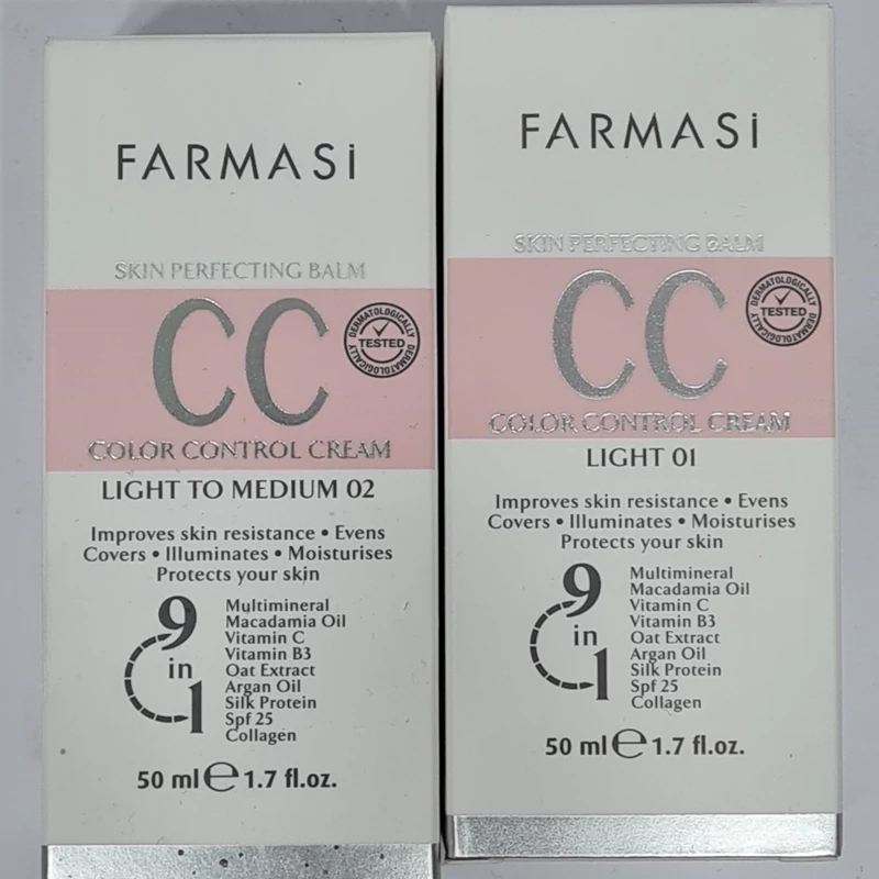 کرم 9 در 1 فارماسی ترکیبی شماره 01 رنگ متوسط از چندین محصول مراقبت از پوست و زیبایی است در دسته کرم پودرها یا ضد آفتابهای رنگی قرار دارد. خواص آبرسانی، رطوبت دهی و نرم کنندگی این محصول از خشکی جلوگیری میکنند و اجازه نمیدهند رنگ محصول تغییر کند و روی پوست بماسد. اگر از CC کرم 9 در 1 فارماسی برای آرایش کردن استفاده میکند، باید بدانید که بافت سبک و رنگ بینظیر آن نه تنها باعث زیبایی شما میشود و از ریختن آرایش شما جلوگیری میکند، بلکه جلوی مسدود شدن منافذ را میگیرد. این محصول ضد آفتاب است spf 25 و اثر UV را خنثی میکند. CC کرم 9 در 1 فارماسی ضد چروک بوده و کلاژن سازی پوست را افزایش میدهد. نرم کننده و رطوبت دهنده آبرسان و محافظ بافت پوست دارای اثر ضد آفتاب با SPF 25 روشن کننده و ضد لک و چین و چروک یکدست کننده رنگ پوست تصحیح کلیه نواقص پوستی ماندگاری بالا و بسیار مغذی پوشانندگی مناسب درخشان کننده و تقویت کننده افزایش کلاژن سازی و بازسازی پوست حاوی روغن ماکادمیا، ویتامین B3 و C، عصاره جو، روغن آرگان، پروتئین ابریشم و کلاژن آنتی اکسیدان بسیار قوی و ترمیم کننده مناسب انواع پوست به ویژه پوست خشک و لک دار بدون ایجاد حساسیت