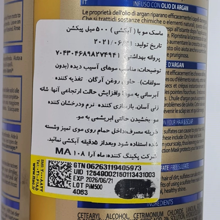 ماسک مو فری سولفات آرگان پیکشن 500میل (با ابکشی)