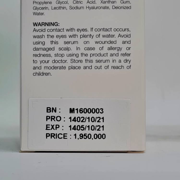 تامین مواد مغذی و ویتامین ها برای پوست سر درمان ریزش مو تقویت فولیکول های مو بدون نیاز به آبکشی روش مصرف:دو بار در روز لوسیون را به پوست سر بزنید و ماساژ دهید. (بدون نیاز به آبکشی) هشدار مصرف: از تماس این سرم بر روی پوست سر زخمی و آسیب دیده خودداری نمایید. در صورت ایجاد حساسیت یا قرمزی، مصرف سرم را قطع کرده و به پزشکمعالج خود مراجعه فرمایید. از تماس با چشم ها خودداری نمایید و در صورت تماس چشم ها را با آب فراوان بشویید.